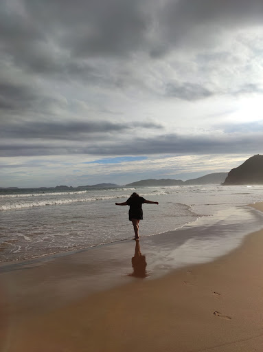 wide beach plenty of space that allows to play ball, racket, etc.. without bothering anyone... it has different areas with stronger waves with some light surf combined with other areas more quiet where kids can play safely... the free space also allows to avoid the umbrella rent, something very difficult in other beach here at buzios. prices are lower too and since it bigger it has a very good variety for food and snacks...