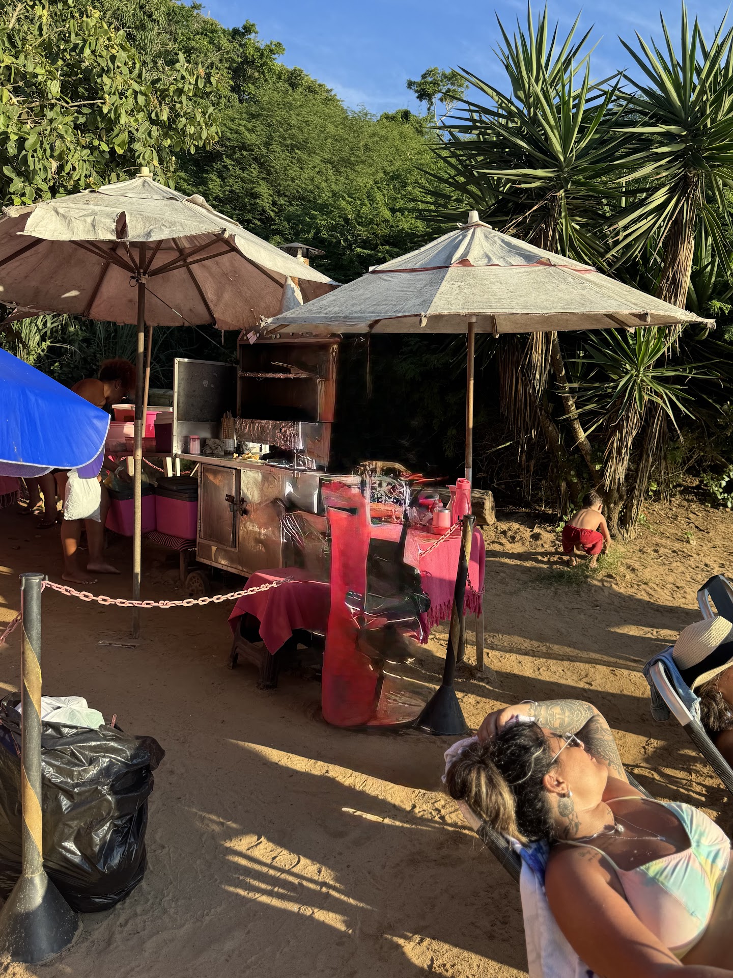 Fomos eu, minha filha e um casal de amigo com suas filhas para Buzios passar o ano novo e no dia 1 de janeiro pegamos praia na Azeda e Azedinha. Na parte da tarde minha filha me pediu um espetinho, e fomos até uma barraca que é toda Rosa – a única do local que vendia espetinhos comprar um queijo coalho para mim e um pão de alho para ela.