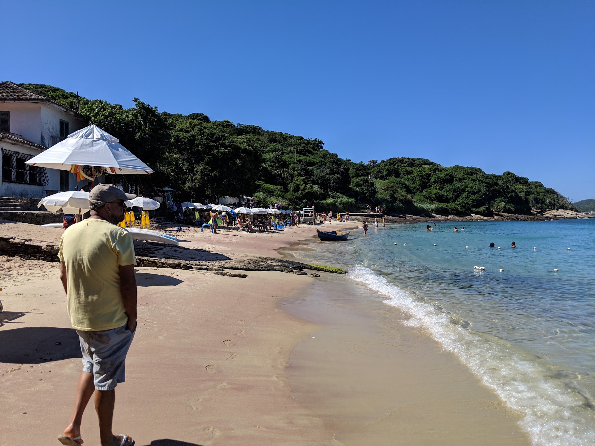 The beach that I liked the most from all buzios, the water is very calm and the space is not massive but it is more than enough for everyone to enjoy the place without feeling of overcrowding. If you are staying in the city center to get here is very simple and fast, there's no need to pay any transportation, it can take you mamixum 20 mins walking of course depending on how fast you go. There you will find small businesses that you can get drinks and food from, I found the price range at this beach to be good, not extremely over priced like others but you can save by bringing your own food and drinks. Something to be aware of this beach is, at least at the time I went to, there were no umbrellas to rent or where you can sit from any of this small businesses, there's no shadow at all so you will have to be under the sun if you are not used to this I recommend you to go to another beach where you will be more comfortable. There are also no public toilets...