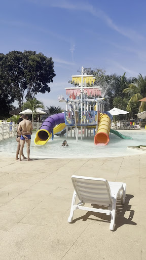Read moreChegamos por volta das 11h, tinha bastante fila para entrar, ficamos cerca de 30min aguardando para validar a entrada com a pulseirinha do hotel. O parque é muito bonito, tanto o mobiliário, quanto a estrutura e o paisagismo. O lago em frente deixa tudo ainda mais bonito. O ponto negativo é a falta de piscinas quentes, no dia em que fomos, só havia um ofurô aquecido, de forma que estava lotado, enquanto algumas piscinas estavam vazias. Não ter piscina quente não seria um problema, mas por ser em Caldas Novas se espera que tenha água quente. Os valores dentro do parque não diferem de outros parques da cidade, achei a alimentação até com preço ok. Tem bastante variedade de alimentos e bebidas. Oferecem lockers. O estacionamento é na parte externa e custa 20 reais. Oferecem atividade para crianças com monitores e a parte da recreação é bem animada. Possui alguns toboáguas. É possível alugar cabanas. Todo o consumo é feito com o cartão pré-pago adquirido no parque ou com o pós pago dos hotéis parceiros. Oferecem atividades no lago pagas a parte. Tem restaurante por quilo com bastante variedade, 99 reais o quilo. Vi que os ingressos são vendidos a partir de 60 reais, dependendo da antecedência da compra, no dia que fomos estava custando 95 reais de acordo com o Google Maps. A avaliação mais baixa vai justamente pela falta de piscinas quentes ou aquecidas. Fomos abordados duas vezes por vendedores oferecendo “cortesias” e isenção do estacionamento, eles trabalham com vendas de imóveis time-share, não recomendo participar ao menos que tenha interesse em comprar ou disponha de bastante tempo para assistir à apresentação, nos dois casos recusamos e...