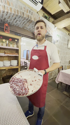 Fomos atraídos pelo folder que estava disponível na recepção do hotel, indicando uma excelente pizza assada em forno a lenha e servida em ambiente rústico e bonito, além de servir a inovadora pizza de sagu. Falava também este folder que haveria um transfer hotel x vinícola x hotel, porém após contato via WhatsApp, que demorou para responder, fomos informados que esta regalia é apenas para grupos maiores e não se aplica a casal. Imaginávamos também que o serviço seria a lá carte, mas a informação repassada via WhatsApp indicou que sistema era rodízio. Chegando na pizzaria fomos informamados que como chegamos após as 22 horas, somente estava disponível o sistema a lá carte. Pedimos então uma pizza média meio portuguesa e meio filé com vinho que estava apenas boa, sem surpreender e possibilidade de melhorias na apresentação. Provamos também a famosa pizza de sagu, que é uma pizza fria, com massa de bolacha Maria, base de creme, sagu e leite condensado, que foi uma gentileza da casa, já que não foi possível participar do rodízio. Achamos a pizza diferente e gostosa, mas não é propriamente uma pizza, mas sim uma sobremesa. A carta de vinhos é razoável e a de cervejas é fraca. O nível de ruído estava alto nesta noite. O atendimento é simpático e educado. O cardápio não é digital, não tem álcool gel nas mesas, os guardanapos não são envelopados e os talheres não são ensacados. O azeite de oliva é de qualidade inferior. O estacionamento é privativo, gratuito e descoberto. Os toaletes são simples e limpos. O custo x...