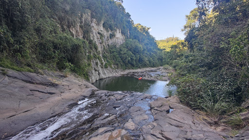 Read moreLugar incrível, acesso à cachoeira por carreador particular, o carro chega próximo e a trilha é fácil. A paisagem encanta, tem um rio que corre manso na pedra, água cristalina, que desce em uma pequena queda d'água com um poço raso. Mais abaixo há uma queda maior, com poço mais profundo e paredão de pedra. Proprietários alugam chalés, têm camping ou possibilidade de apenas descer na cachoeira. Vista muito bonita dos morros e do pico...
