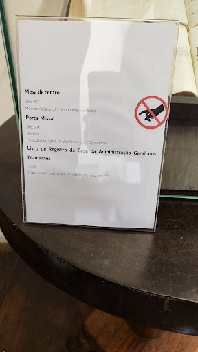 Cheguei lá às 11h30 para visitar o museu dos diamantes e tive a seguinte surpresa: uma das guias estava de folga e a outra em horário de almoço, retornando apenas após as 13h 😑 Por isso, um vigia muito simpático nos acompanhou pelos 3 cômodos da exposição (sim, só 3 cômodos).