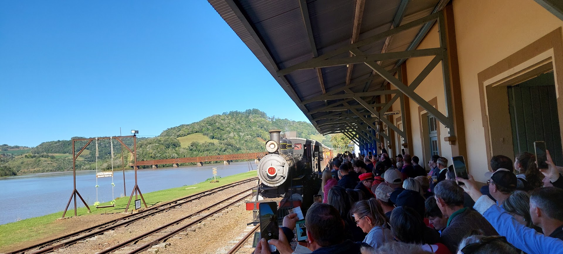 Read morePonto final no RS do passeio no Trem das Termas que percorre o trecho da antiga Ferrovia Rio Grande - São Paulo, partindo de Piratuba-SC. O ponto alto do passeio é a travessia da ponte sobre o Rio Uruguai. A estação em si é simples, sem lojas ou lanchonete, mas conta com banheiros. Uma escadaria antiga leva à cidade, terminando ao lado de um mercadinho e de frente para uma pequena praça em cujo entorno há a Igreja, o Banco do Brasil e um hotel. Atenção necessária nestes tempos de pandemia pois, apesar dos cartazes sobre uso de máscara nos vagões e disponibilidade de álcool em gel, estas medidas de higienização não são mencionadas na fala das atendentes e, pessoas sem máscara não são alertadas para as colocarem, deixando um ar de pouca atenção com a situação...