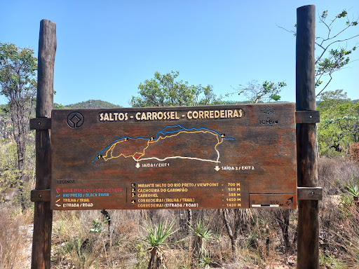 Read moreUma trilha super. Você chega a este ponto fazendo a trilha por dentro do Parque Nacional da Chapada dos Veadeiros. Dnetro do parque, há trêstrilhas diferentes e duas travessias. Optei pela trilha Amarela, como pontos de Cachoeira do Salto, Cachoeira do Carrocel e Corredeiras. Maravilhosas, cada uma a sua maneira, tanto para quem quer águas rasas quanto aqueles que curtem mergulho. Se prepare para uma decida e subida ingremes para chegar até a cachoeira do salto. Mas super vale a pena, um passeio para aproveitar o dia. O ingresso é de 40 reais ou 32, com desconto, alémde meia entrada como de praxe. O local oferece, na recepção, estrutura de banheiro, bebedouro com água gelada e lojinha de lembrancinhas, além do estacionamento (pago a...
