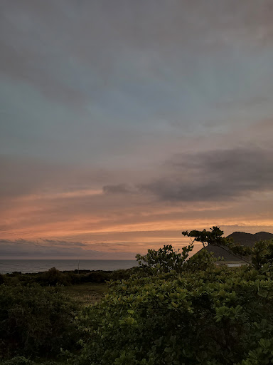 A vista é paradisíaca. Muitas ondas, mar bem agitado, perfeito para a prática de esportes. A areia tem bastante conchinhas e pedriscos, o que contribui para uma vista exuberante.