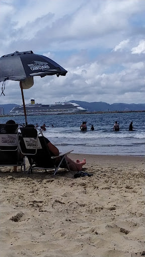Read moreSei que é complicado avaliar praia, pois vai muito de dia que o mais ta mais tranquilo ou agitado, mass, no dia que eu fui... Estava super ensolarado até quis fechar o tempo mais deu sol o dia todo, estava ventando meio constante, com algumas rajadas mais intensas, ainda assim, tranquilo, o bom também é que os ventos não são carregados de areia, que ja fui em praia ruim de vento com areia também, a faixa de areia é meio curta, então é fácil de encher a praia, se a maré subir então.... , Mais estava super tranquilo, ficamos das 10 as 17h na praia, mais da metade do tempo na água, que estava muito boa, ondas baixas, e a praia é de queda suave, a faixa de areia desce leve para o mar, que abre uma área muito boa para brincar, água super clarinha, a ponto que, tenho 170cm de altura a água no meu quadril eu ainda enxergava os meus pés, ficamos perto do Marambaia no fim da praia, na maior partes estava boa assim a água, mais, em um ponto até isolado tinha algumas algas que sujava um pouco a água, mais tudo normal, as ondas eram tranquilas, sempre baixas, por volta de 40cm de onda, as mais altas que chegavam a uns 60cm, mais eram raras, como bônus da praia, ainda tivemos o privilégio de ver e ouvir a buzina do cruzeiro saindo do Porto, poucos vendedores ambulantes, e boas vendas de comida na região, e até que não são caras. Em resumo, pelo menos no dia que eu fui, o estilo que estava, estava muito melhor que a sua praia vizinha mais famosa (BC). Atenção Nem tudo são flores No mesmo dia que fomos, as 18h morreram 2 pessoas, pai e seu filho afogados, mesmo tendo os bombeiros e quando o pessoal ia mais fundo eles ja apitaram pedindo pra voltar. Mais isso é básico para qualquer praia, mesmo essa sendo uma praia...