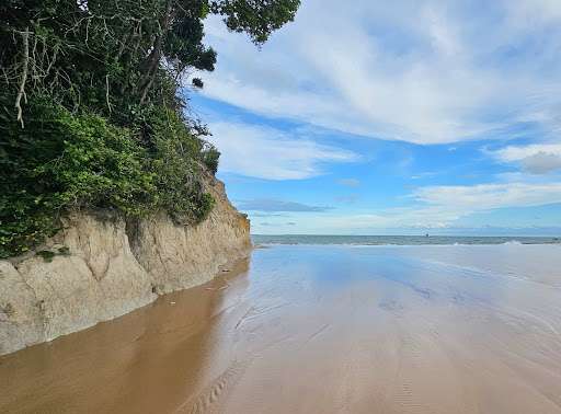 Lugar lindo, a praia que mais amei. Fomos de uber destinado ao restaurante JACARAPÉ. Seguimos à esquerda (sentido a falesia) e numa caminhada de pouco mais de 5min chegamos na parte do rio. Tem uma rampa que dá acesso ao topo da falésia. A vista é incrível, praia limpa, muito boa, lugar de poucos turistas, sem ambulantes, frequentado mais por nativos. A parte ruim é que por estarmos de uber fomos orientados a começar a chamar pelo aplicativo por voltas das 14hs , pois, segundo a população local e até mesmo o motorista do uber lá não é um local que os ubers costumam ir. Eles vão para deixar as pessoas, mas na volta, quase sempre o pessoal sobe até a rodovia para pegar um carro. Nós seguimos a recomendação. Voltamos para o restaurante JACARAPÉ e de lá pedimos um uber por volta das 14:30. O uber demorou cerca de 20min para achar um motorista que aceitasse a corrida. Vale muito a pena conhecer....