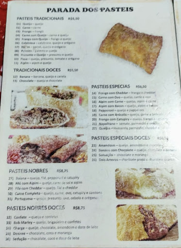Read morePastéis e atendimento de excelente qualidade. O ambiente deixa a desejar não por culpa do estabelecimento, mas devido ao fato de uns cornos mansos passarem dando grau na moto e fazendo maior barulho quando estou no xaveco com minha gata. Pretendo processar a prefeitura. Ademais, continuem com o...