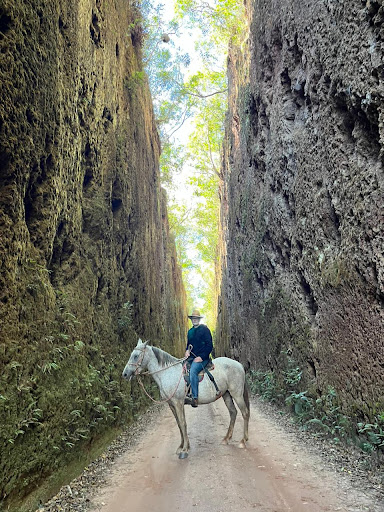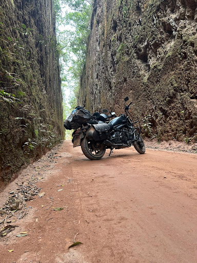 A estrada é muito gostosa e tranquila com paisagens lindíssimas. Existem vários cortes nas pedras que foram feitos pra passagem de trem mas o trem nunca chegou a passar ficaram só os cortes nas pedras. No caminho tem vários esse é o maior, mais longo e mais alto! Vale o passeio ! Incrível ver as pedras cortadas ! Tranquilo pra moto inclusive motos baixas pra que tem skill em estrada de terra, se não tiver chovido a estrada é tranquila. Época de chuva deve ficar...