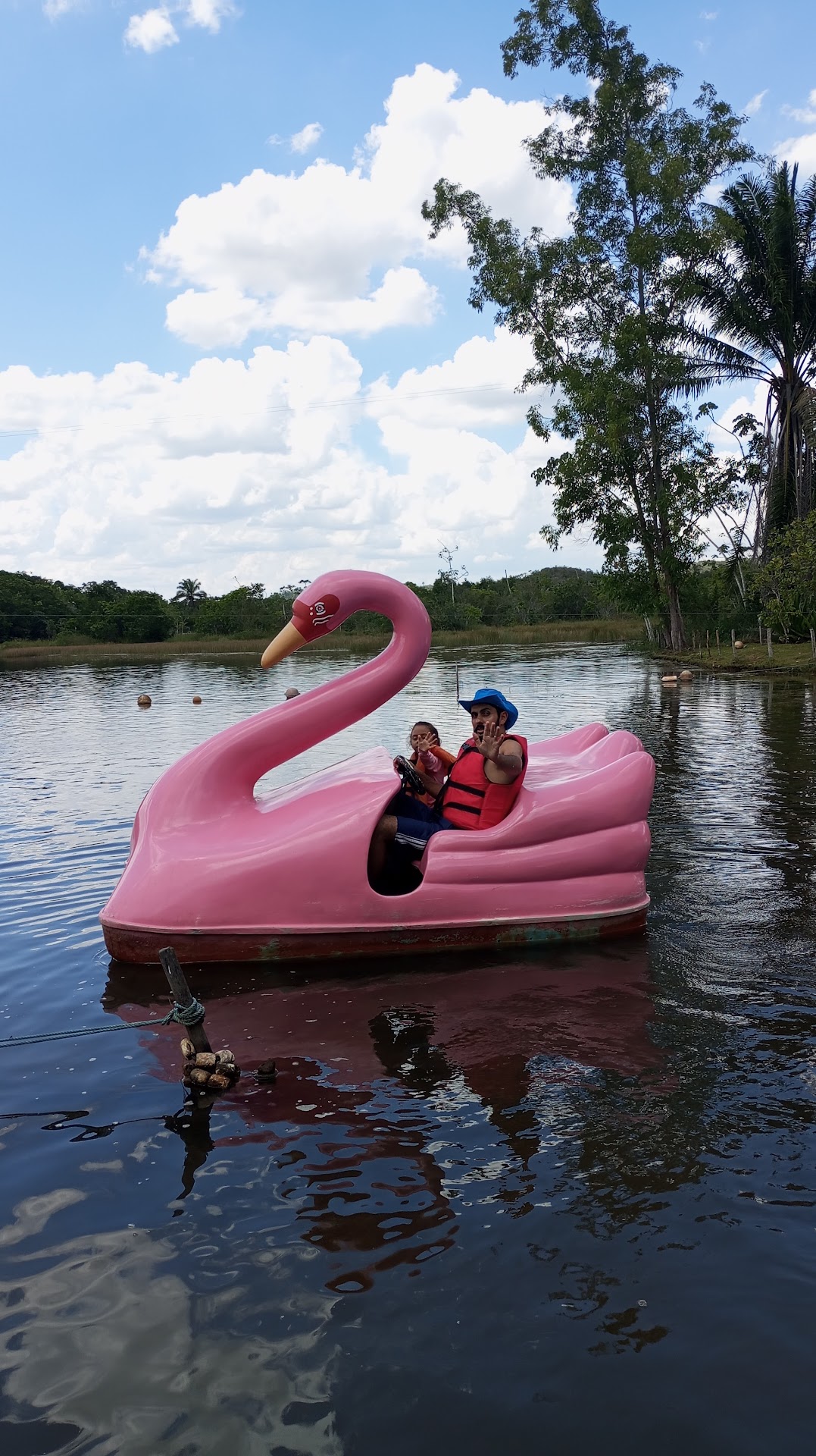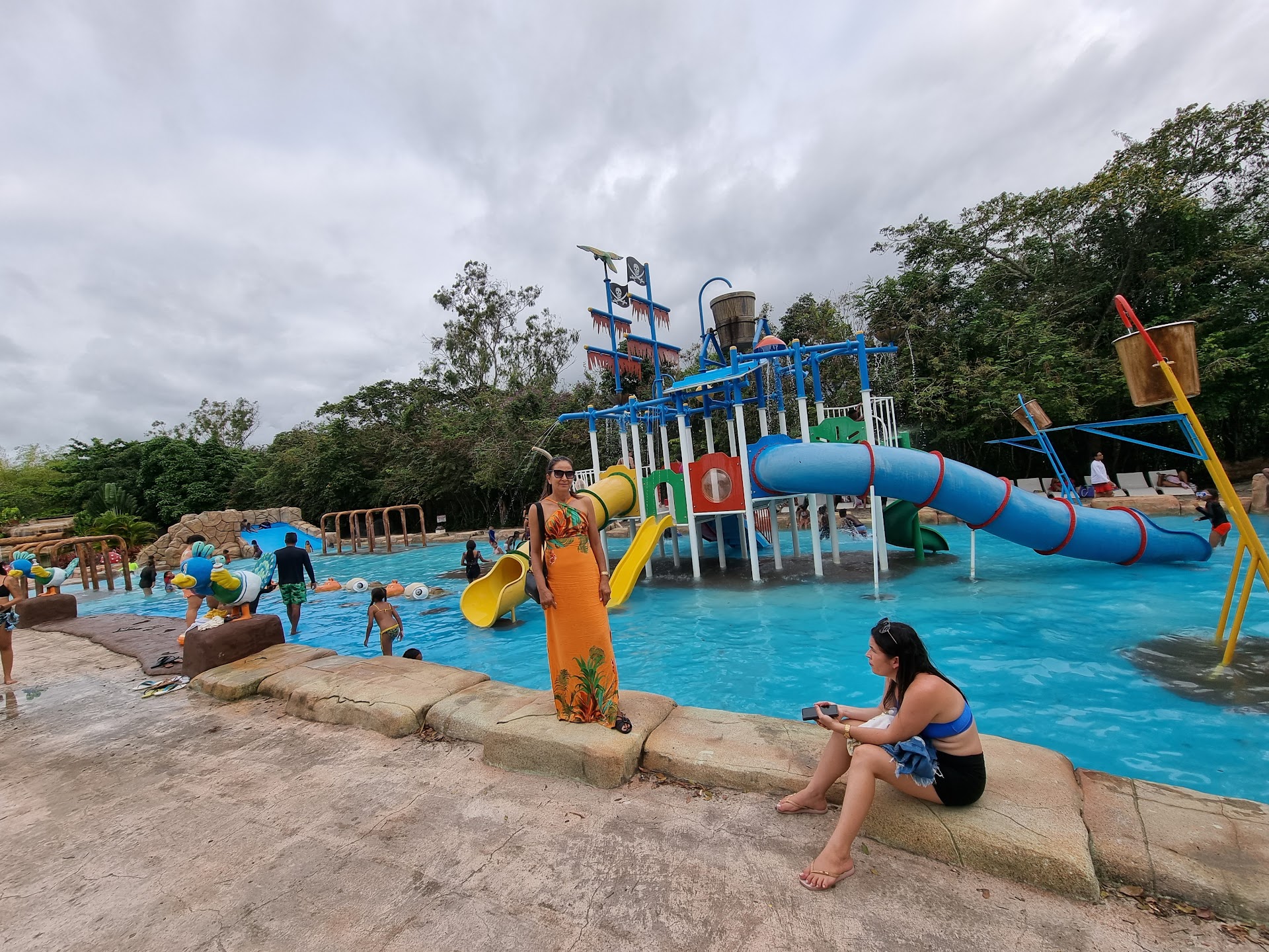Foi um dia muito legal. Ao chegar, a quantidade de ônibus e veículos me deixou assustado por pensar que estaria excessivamente cheio. Mas o espaço pra todos é tão amplo que não incomoda em nada ter tanta gente, não falta espaço básico de cada um e este fator chega a ser benéfico: Estar cheio transmite alegria e vida. As crianças adoram brincar com outras crianças. Existe áreas onde é possível levar tudo o que quiser, água, bebida, comida, até a carne pra assar (e lá já tem a churrasqueira de alvenaria ao lado dos quiosques). Em outras áreas não pode entrar com a própria comida. Que basicamente são as áreas dos restaurantes e estes ficam mais próximos à piscinas. Dá pra dizer que o passeio lá agrada desde as crianças de 2 anos até os adultos ou adolescentes pois tem piscinas rasas e toboáguas lúdicos (dinossauros etc), até toboáguas mais rápidos e altos e a tirolesa. Além dos baldes que entornam água nos banhistas em vários pontos. Agrada a todos. A comida pode demorar a sair ou haver pequena enchente no horário do almoço, mas basta ter isso em mente e adiantar lanches antes mesmo do almoço e fazer o pedido cedo que isso não atrapalha a experiência. Há um lago com passeio de pedalinhos e os pedalinhos são cisnes. Gostei da conservação e pintura dos pedalinhos. Ao fim do dia comemos o churros muito bons da barraca próximo ao ambulatório e tiramos fotos de alguns dos vários pavões que circulam livres pelo parque. São muito dóceis deixam que a gente se aproxime. Tenho certeza de que ainda há o que conhecer lá e eu voltaria com certeza em...