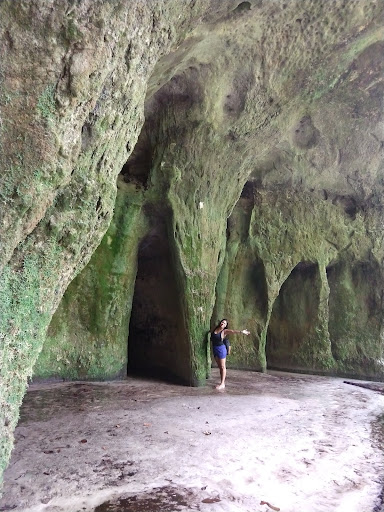Read moreFica bem pertinho do centro, dentro de uma área de proteção ambiental, por isso só pode ser visitada com um guia. Ele cobra R$ 100 dividido pelo número de participantes. Dependendo você pode negociar o valor se forem apenas duas pessoas. Fiz o tour com o seu Raimundo Garcia, que é uma figura. A caminhada dura de 1h a 2h. Vai depender do ritmo de cada grupo. A primeira parada é na enorme caverna, que você pode visitar apenas 60 metros. Caminhando poucos passos dentro dela, num dado momento o guia faz o " teste do escuro" apaga a lanterna e você fica diante de grande breu, ouvindo apenas o bater das asas dos morcegos. Em seguida você visita também a gruta da Judeia, que está dentro da mesma reserva. Aproveite para conhecer a Cocoloba: folha gigante com 1,80 e o Cogumelo gigante. Você pode combinar essa visita com a Cachoeira Santuário e...