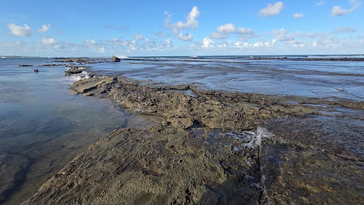 Read moreO local é coisa de cinema. .. só estando lá pra entender... devido à formações de rochas uns 50m à 100m em direção ao mar aberto, surgem barreiras naturais para a água do oceano que geram um show à parte... cachoeiras de água salgada em grandes lagoas entre a faixa de rochas e a areia da praia... águas transparentes, vida marinha como se estivéssemos num aquário raso. Vale a...
