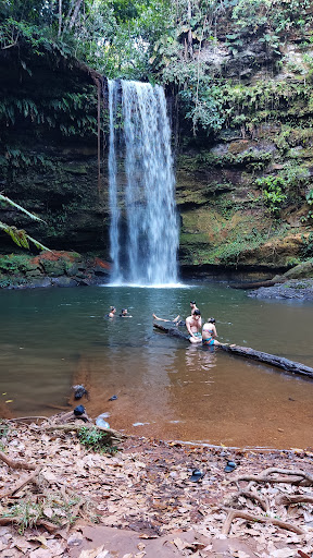Read moreA melhor cachoeira que visitei em Taquaruçu. E todas são lindas, então não é fácil escolher só uma. As fotos do lugar não correspondem à realidade. É muito mais lindo pessoalmente! Difícil pra quem não gosta de água gelada. A sensação é que a gente tá entrando num cooler depois que o gelo derreteu e ele ficou metade água e metade gelo. Eu amo. Nadei igual um peixinho. Inclusive, coisa boa: tem uma parte bem funda, se você gosta de nadar e mergulhar é o lugar perfeito. O acesso realmente é difícil, bem ingrime. Poderiam melhorar a estrutura dos guarda-corpos nas escadas. Porém, fui com meu pai idoso, fomos bem devagar e ele conseguiu ir e voltar tranquilo. Também vi outros idosos se aventurando e chegando lá tranquilamente. Só ir devagarinho. O local também tem restaurante com comida à vontade por um preço fixo. Paguei 60$ por pessoa e adorei, a comida estava ótima. Depois do almoço tem um espaço com redes, então dá pra dar aquela dormida. Ganhou demais meu coração a cachoeira...