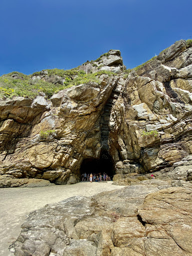 O mar ali é mais agitado, com ondas fortes que convidam a admirar a força e a energia do oceano, embora não sejam as melhores para banho tranquilo. Senti que a praia tem um ritmo próprio, mais vibrante, e é quase o coração da vila, já que perto dali há quiosques e pequenos comércios que dão um tom acolhedor ao lugar. O costão rochoso que margeia a praia me chamou atenção pela imponência das pedras, que formam também a famosa Gruta das Encantadas, que é um espetáculo à parte e merece cada passo de caminhada até lá. Gostei bastante da atmosfera da Praia da Gruta, que mistura a presença marcante da natureza com uma estrutura simples, mas funcional, para quem quer passar o dia por ali, seja comendo algo, curtindo o sol ou simplesmente observando o vaivém das...