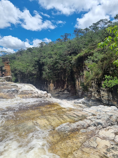 Read moreO lugar é lindo, sem dúvidas, minha avaliação ruim refere-se à estrutura, que deixa muito a desejar pelo preço de 60 reais. O restaurante serve apenas 2 tipos de prato, um com uma carne a escolher e outro com carne de lata, 45 reais, muito caro. Mas o pior de tudo foi os prestadores de serviço, estávamos com um bebê de 3 meses, e o complexo que seria adequado leva-lo estava fechado, então pesquisando eu vi que uma das trilhas desse complexo estava a apenas 200 metros do estacionamento, então fomos. A moça da bilheteria falou que era tranquilo ir com bebê, mas a trilha é íngreme, cheia de pedras soltas, um perigo. Chegando na cachoeira, não havia sombra como foi falado, então o guia que estava naquele local, muito gentil por sinal, nos sinalizou por onde poderíamos ir para pegarmos mais sombra, mas gente, é por cima das rochas, próximo do canyon, tem hora que ou se passa por dentro da água, ou se pula as pedras! Voltei na hora, achei uma sombrinha, sentei com meu bebê e esperei meu marido tomar um banho e viemos embora. Falta muita noção das pessoas que trabalham nesses locais em orientar se é adequado ou não o uso, só querem vender! Foi um passeio horrível e perigoso, que só tentamos fazer porque no complexo falaram que era tranquilo. Mas pra quem não tem criança, deve valer mais a pena, o lugar é lindo,...