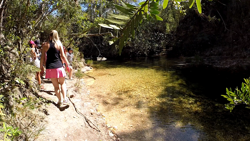 A maior parte da trilha para o Poço Dourado é por vegetação de cerrado, e por isso, muito exposta ao Sol. Dependendo da época do ano, pode estar toda florida, recompensando ainda mais o passeio.