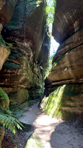 Belíssima experiência! A trilha de acesso é bem sinalizada, porém, achei um pouco perigosa porque não possui estrutura como cordas de apoio; é totalmente livre, cheia de pedras, algumas difíceis de transpor, e em alguns pontos nada as separa de precipícios. No final da trilha, na chegada à Fenda da Freira descemos uma parede de terra de mais ou menos 3 metros de altura segurando nas raízes das árvores, seguindo a orientação das voluntárias do ICMBio que nos deram breves e importantes informações a respeito da fenda. Formação lindíssima, muito interessante e que vale o esforço da...