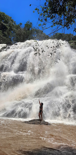 Read moreLugar incrível para um bom banho de cachoeira. Se quiser aproveitar melhor, cheguei até 10h. Há poucas vagas no estacionamento, mas você pode parar ao redor. Apenas tenha atenção para não atrapalhar a circulação dos carros dos moradores dos sítios. Logo no estacionamento há uma lojinha cheia de artigos de Minas para comprar. Mas recomendo que o faça depois da visita, pois quem compra os ingressos, ganha 3 reais de desconto nas comprinhas. O valor do ingresso é 20 reais por pessoa. Crianças pagam menos. Você entra apenas após colocar uma pulseirinha, tipo de camarote. A trilha é muito bem feita, com degraus em pneus e concreto, porém, se você tem problemas de mobilidade, infelizmente se tornará muito difícil. Não é acessível. Há paradas de descanso ao longo da trilha. Quando você chegar a queda, haverá um mirante para lindas fotos. Depois, é só se equilibrar nas pedras para acessar a "prainha". O banho é gelado, acorda até defunto, mas é uma delícia. Se você gosta de perrengue, continue a trilha pelo rio e chegará até uma queda menor com área de banho, chamadas de piscinas naturais. Vale a pena? Depende do seu espírito aventureiro. Se for frescurento/a, pare na Cachoeira principal. As trilhas são lindas... Muita mata nativa. Portanto, há chance de você encontrar animais silvestres. Lembre-se: você é o visitante, não eles. Apaixonante: a quantidade de borboletas. Aliás, nas cachoeiras de Bueno Brandão tem muitas delas... Uma mais espetacular que a outra. O local é super pet friendly. Há guias no local para auxiliar o turista. Respeite as orientações. Ameeeeei, quero voltar, mas quando estiver mais em dia com meus...