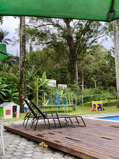 Eu vim com minha família, e há brinquedos para crianças, como pula-pula, casinha e balançador. Há também varas de pesca disponíveis ao redor do lago, sendo só pegar as varas e iscas para pescar, com avisos de que a pesca é apenas esportiva. Além disso, há pedalinhos disponíveis. A piscina é ótima, com água maravilhosa, mas é rasa, com profundidade máxima em torno de 70 cm, o que foi ideal para meus filhos, que adoraram.