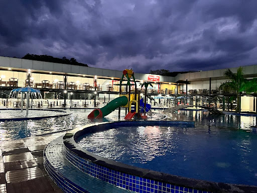 Read moreHermso lugar, impecable y la atención es excelente. Tiene varias piscinas, de agua caliente jau 2 afuera y 1 bajo techo, después hay otras que son de agua natural y de agua fría con toboganes. Las cabañas están bien distribuidas, nosotros nos quedamos en una para 4 personas con 2 habitaciones, con camas de 2 plazas. La cocina está provista con lo básico y tiene parrilla, tv con HBO go, Netflix y Amazon prime. El predio está muy lindo además de las piletas tenes pesque y pague, tirolesa, escalada, botes a pedal. En el predio hay varios locales de comida, boutique, mini mercado. Cada uno tiene horarios y te entregan los detalles al llegar. Sale 20reales la entrada al predio (lo pagas por persona y sirve para todos los días que te quedes) y 40 reales la entrada a la pileta (si pagas más de 3 días baja a 30 reales) y el alojamiento depende de qué tipo elijas. Aunque toda la info de precios te la pasan completa por WhatsApp, es un poco molesto estar pagando cada cosa individualmente, debería tener alguna opción de combos y que hagan un mejor descuento por quedarse varios días. En el pueblo no hay mucho que hacer y algunos supermercados abren hasta el sábado al mediodía. Dato importante: todo se puede pagar con tarjeta, nosotros no llevamos reales y...