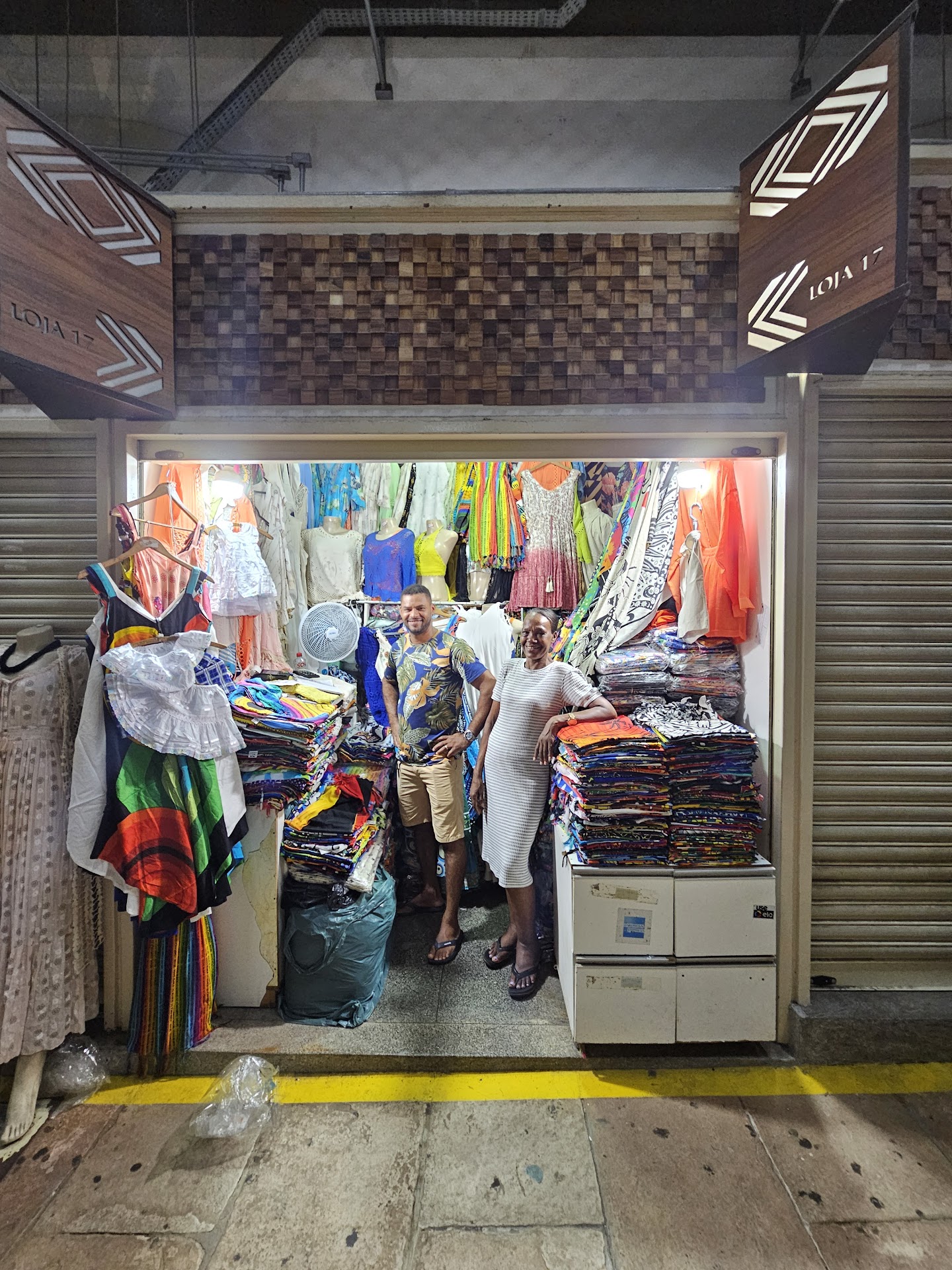 If you want WOMEN'S DRESSES, SCARVES, etc. start at Loja 17 with Jefferson. I arrived on a Sunday after the market closed. I looked wild and crazy after a wild and crazy motorcycle ride from Itapua. Jefferson was calculating his books and ready to go home for the day, but treated me with dignity and kindness. He had the patience of Job.