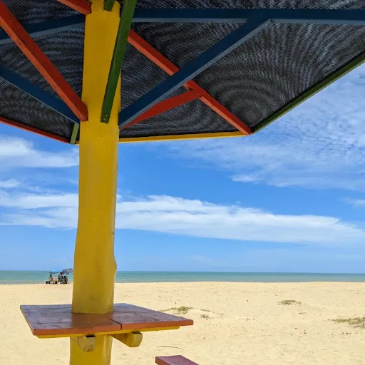 Read morePraia de águas turvas, com muito sedimento de algas, plantas e troncos. Só tem 2 barracas que vendes as coisas e o valor de tudo é inflacionado, água de coco apenas quente e custando 10 reais. Cerveja sem muita opção custando entre 12 e 15 reais a lata. No condomínio de Guaratiba, as casas tem muito pernilongo durante a noite, e durante o dia tem muitas mosca que incomodam muito o tempo todo. Os preços das coisas nos mercados, padaria e restaurantes do condomínio são inflacionados e tudo acaba rápido. (Carvão por exemplo, tive que buscar eles Alcobaça.) Não tem aluguel de mesas e ou cadeiras de praia. E é proibido entrar com cooler na areia próximo as barracas. O atendimento nas "cabanas" parece que estão fazendo um "favor" pra você, não são receptivos, não responde a gente deixando no vácuo o tempo todo. A água das casas são sulfurosas, com alto nível de enxofre, o cheiro não é muito agradável e...