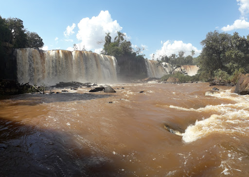 Excelente local para visitação. Apesar de ser um lugar rústico ainda, devido quantidade de pessoas que frequentam o local principalmente aos finais de semana, é possível chegar de carro até próximo à cascata de beleza singular. Deve ter aproximadamente 40.metros de altura e mais de 100 metros de largura. É local frequentado por ciclistas e motorista. Como a trilha é de terra, as pessoas devem ficar atentas a répteis no período da manhã. Muitos gostam de se banhar nas águas deste rio, chamado de Goio-ere. Porém, pais fiquem atentos às crianças, pois é um local de altíssima periculosidade para elas e também para os adultos, em contrapartida com sua beleza. Aprecie ela com muita atenção ao local em que estiver. Estarei postando filme da localidade para ajudar na visualização do local. Se estiver com cheias no local em razão de chuvas, o melhor é não ir até o local. Se torna...