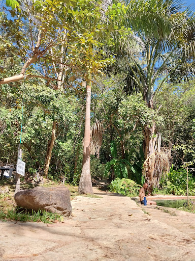 Águas Termais é o nome do lugar. É um nome lugar para relaxar após uma trilha pesada ou antes de pegar a estrada para voltar. As piscinas são quentes, mas não tem a mesma temperatura. Umas mais outras menos quentes. Espaço rústico no meio da natureza. A sinalização na estrada é precária, tem que ficar nem atento a entrada, se não, perde...rs Não tem Internet, só aceitam dinheiro. O bar fica na entrada bem longe das piscinas, acho que isso precisa melhorar. Servir pelo menos bebidas: água, refrigerante, suco, cerveja, perto da piscina seria mais interessante. O banheiro tbm fica na entrada,longe das piscinas o que é bem ruim, pq muitas pessoas terão preguiça de andar tanto para fazer Xixi, então, imagina onde irão fazer
