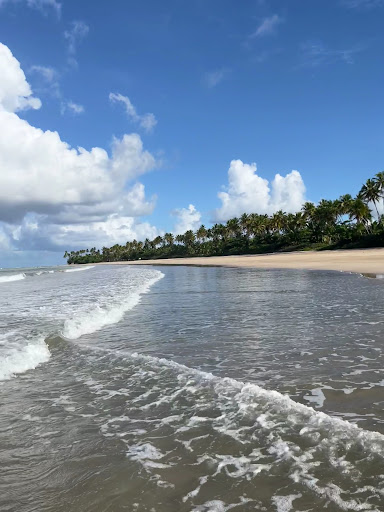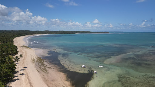 Pense numa praia praticamente deserta cercada por coqueirais, com areia plana, águas cristalinas e piscinas naturais no litoral da Bahia.