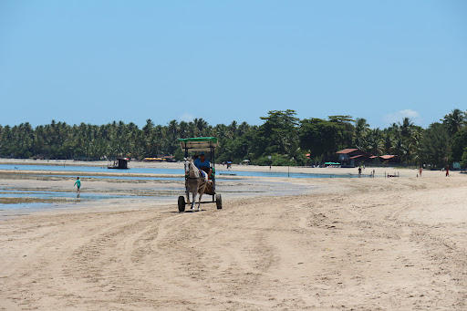 Read moreUm lugar pra quem quer fugir do agito das outras praias. Água cristalina, um visual maravilhoso! Dá pra caminhar muito pra dentro do mar, é muito raso. Mas recomendável usar sapatilha pra água. Mergulhei bastante com snorkel e tem muitos ouriços nos corais. Pra mergulhar escolha uma maré intermediária, nem tão baixa, nem tão alta. Pra tomar banho, a maré alta é melhor, na baixa fica muito raso, mas também é gostoso. A água fica quase quente. Vai do gosto de cada um. Vi passeios na praia a cavalo, que levam para os manguezais, de onde sai uma água mais escura e vi aqui em algumas fotos e comentários as pessoas confundindo com água suja. Mas não tem nada a ver. Fiquei hospedada nessa...