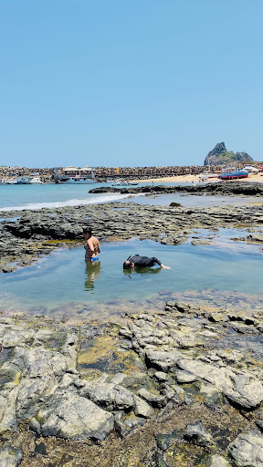 Read morePraia maravilhosa, de facil acesso, e muito tranquila para crianças e adultos. Ideal para mergulho de snorkel ou cilindro, pois além de agua cristalina, através da qual se pode avistar pequenos tubarões, arraias, tartarugas marinhas e cardumes de peixes, possui dois naufrágios onde a fauna é abundante e rica. Fique atento pois não possui banheiro. Existem dois banheiros químicos que na minha opinião não deve ser usado nem para salvar uma vida. Além de tudo isso, nos arredores há ótimos restaurantes como O Mergulhão e o Museu do tubarão. Tem duas empresas de mergulho com cilindro, aluguel de colete salva vidas e snorkel. As cadeiras de praia e guarda sol são alugados pela "bagatela" de 50 reais o dia. O aluguel de snorkel e colete custa 10 reais. Na minha opinião a melhor praia para se passar o dia com a família. Além dos restaurantes, na praia há duas barracas que servem alimentos e bebidas, desde água de côco até caipiroska. São a barraca da Graça e da Regina. Só me servi na barraca da Graça cujos pratos são muuuuito fartos e gostosos. A barraca da Regina esteve fechada a maior parte do tempo. No porto você também pode alugar um barquinho pequeno, dividir com mais uns dois turistas só para interagir com os golfinhos no mar. Sai muito mais barato que contratar um passeio de barco que custa muito caro e te leva alugar nenhum. Sai por volta de 100 a 150 reais. Se tiver mais turistas custa apenas 100. Fique atento a isso também. Projeto Tamar fã captura de tartaruga nessa praia entre outras para avaliação e marcação....