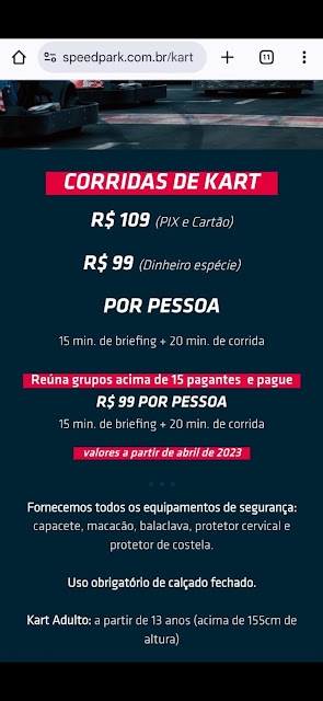 Read moreA experiencia é muito legal. Porém deixa a desejar nos pontos: qualidade do uniforme bem usado, equipamento de proteção com capacete surrado e muito fedido ou velcro das proteções esgarçados. O vestiário é pequeno e mal projetado, levando em consideração o fluxo de pessoas, tem armários disponíveis porém sem chave para armazenar os pertences pessoais e orientação muito ruim de como vestir o uniforme ou equipamento, poderia ter um video ou um auxiliar para os novatos. No final da corrida, ficamos aguardando o resultado vários minutos na tela. Depois de um bom tempo a tela nao atualizar, perguntamos no caixa e o resultado tava impresso porque a tela estava fora do ar. Mas nenhum funcionário se deu o trabalho de nos avisar. A experiencia da corrida em si é muito legal e eu iria outras vezes, porém esse suporte pré e pós corrida deixa...