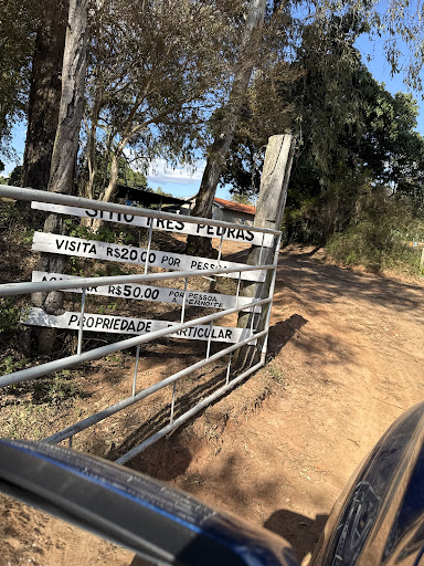 A estrada de acesso a fazenda possui mais ou menos 14 km de terra. Fui por Pardinho. A primeira parte, a estrada é boa. Os últimos 7km, a estrada de terra é bem ruim(muito cascalho, pedras soltas, areia fofa, buracos e aqueles sulcos formados pela chuva). Fui com uma Scooter Maxsym 400i e sofri bastante. Não recomendo. Precisa de motos altas ou carros normais, menos uma Scooter, principalmente uma Maxsym que é super baixa kkkkk. Mas vale muito a pena a visita. A Fazenda em si é bem legal. Paga-se R$ 15,00 por pessoa para ter acesso e fazer as trilhas. Trilhas bem legais de se fazer., As 3 Pedras são um verdadeiro monumento da natureza. A área de camping tudo bem organizado e muito "raiz". A pessoa que nos recebeu foi muito bem educada e atenciosa(não me lembro o dele). Nos deu as dicas de como fazer as trilhas etc. Em alguns pontos, precisam melhorar as placas de indicações das trilhas. Vá bem cedo, para que o sol...