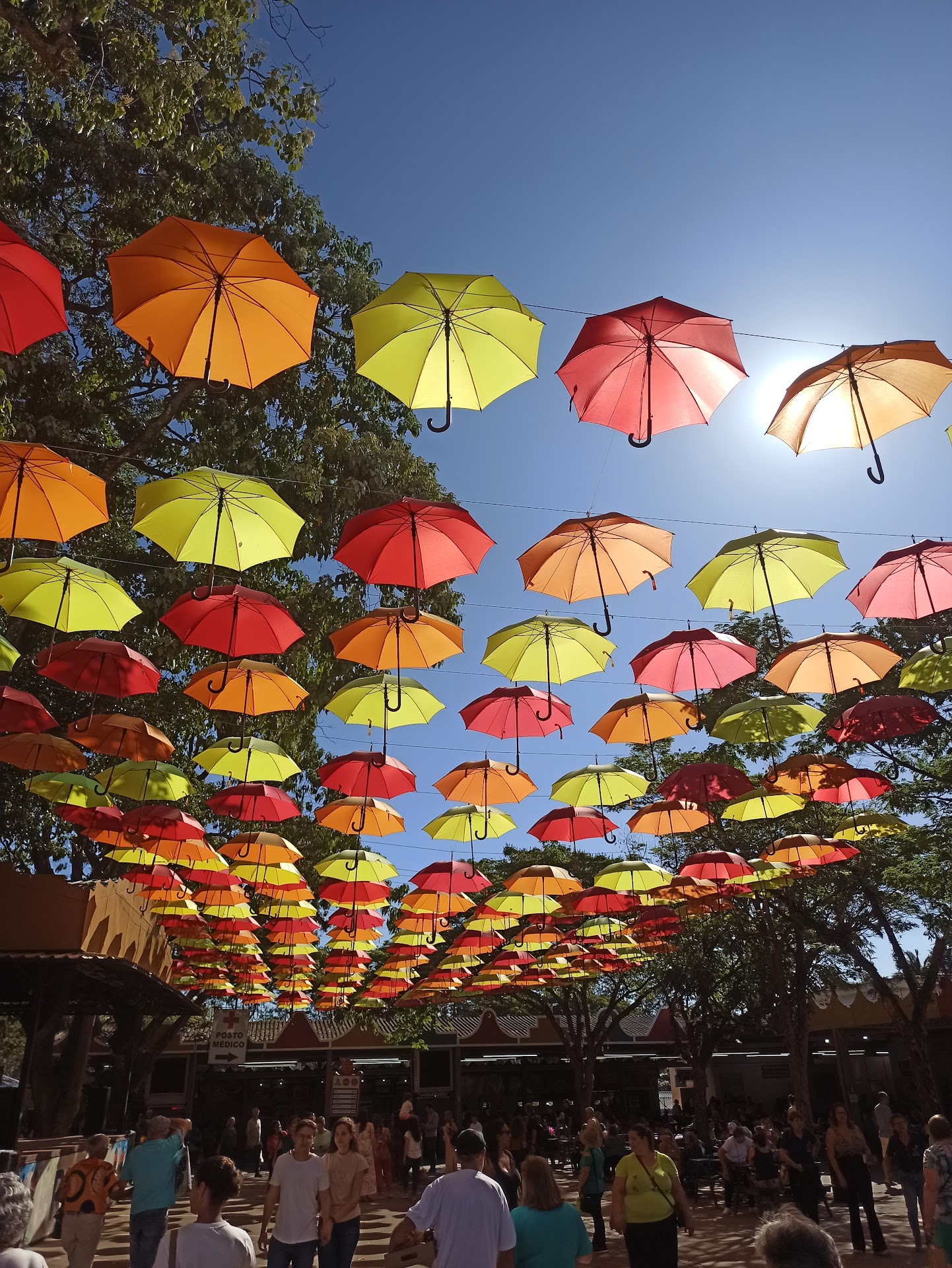 Logo ao entrar, fiquei maravilhado com a decoração meticulosamente planejada. Flores de todas as cores e tipos adornam cada canto, criando um espetáculo visual impressionante. Os guarda-chuvas coloridos suspensos formam um teto vibrante e alegre, adicionando um toque de magia ao ambiente.