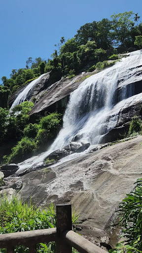Read moreBonita Cachoeira, gigante y de acceso gratuito. Pero únicamente se puede ver porque meterse esta prohibido. El camino es de facil acceso, se puede llegar en auto o a pie, ya que se encuentra al costado de la calle. Le preguntamos a una de las guardaparques si habia pozones para meternos y nos indicó que siguiendo la calle (foto donde se ven los conos naranjas) hacia la derecha ya llegabamos a los pozones. Eso no esta indicado en ningun lado! Ni carteles antes de llegar ni en el mapa.. Una vez en el primer pozon, podes seguir y hay una trilha hacia otros pozones, te podes meter y hasta bañarte en pequeñas cascadas....