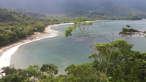Read moreLinda praia. Só é possível chegar de barco ou off road, depois do início da Reserva da Mata não é possível o acesso por carros que não sejam 4x4. Aparentemente possível realizar o trajeto pela trilha, a pé, de bike ou moto. De jipe são aproximadamente 2h de um trajeto sinuoso, ida pela manhã e volta pela tarde pois não é recomendado via dupla. Logo no início da reserva, tem uma trilha para a Cachoeira da Água Branca, com várias paradas de poços com água cristalina (e bem gelada rs) para se banhar. Só se atentar aos locais de maior profundidade e aos borrachudos. Tem alguns restaurantes e quiosques na praia, por um valor elevado (2 pessoas na faixa de 300-400 reais). Tem o mirante na estrada, e o Mirante do Coração que é acessado no início da praia logo depois da vila caiçara subindo alguns degraus, de fácil acesso e uma vista linda da praia, possível visualizar a Cachoeira do Gato. Existem trilhas possíveis para conhecer as praias vizinhas. Tem campings locais, equipados com banheiro e chuveiro. Mas os restaurantes e quiosques fecham às 16h, horário que os passeios de barco e jipe retornam ao mesmo tempo e a praia fica mais esvaziada. São 2km de praia. O mar tem uma grande área de risco por conta da corrente do retorno, então é importante respeitar o local apropriado para banho conforme orientação dos guias. Não há salva-vidas. O lado mais à direita do mar tem águas mais calmas e tranquilas para mergulho. Já à esquerda, tem o encontro do rio com o mar, que é bem bonito. Orientam que entre na água apenas no rio, não nessa parte do mar por ser mais perigoso. Realizamos o passeio durante o dia, saindo às 10h da agência e chegando às 18h. Adoramos e...