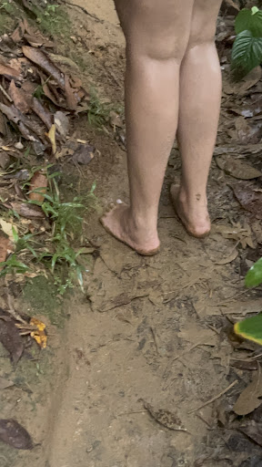Algumas horas depois voltei a encontrei a trilha correta que começa atrás das rochas no fim da praia do Félix. A trilha durou cerca de 20 minutos e tem alguns trechos perigosos. As subidas são um pouco de desafiadoras mas para jovens e crianças é possível subir, há apoio em galhos e pedras. O problema é que na parte mais alta da trilha existem alguns trechos em que a trilha fica estreita e beirando uma ribanceira. Quando há dias de muita chuva ali se torna escorregadio e bem perigoso, com risco de escorregar pela ribanceira.