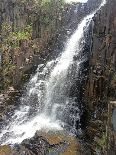 Lugar muito gostoso, bem perto do asfalto, não anda nem 500m de estrada de terra, logo na chegada tem um gramado, bom para parar o carro ou a moto, logo a frente está a cachoeira, você chega na parte de cima dela, possui um lago pequeno na frente do gramado (bem pequeno mesmo, parece uma piscina de 5 mil litros), tem uma queda de água e as crianças costumam ficar brincando por alí, este local não possui árvores grandes e o sol pode incomodar nos dias de verão se você for com muitas pessoas, vai faltar sombra, rsrs. Logo na lateral do terreno possui um pequeno caminho que vai até o pé da cachoeira, o caminho não difícil, porém uma pessoa idosa não vai conseguir descer devido aos obstáculos no meio do caminho, árvores caídas a serem puladas e barrancos aonde só cabe o seu pé para passar não são incomuns, mas se escorregar e cair, vai cair num laguinho oriundo da cachoeira. Ao chegar no pé da cachoeira, terá uma vista maravilhosa pela frente, haja memória no celular para tanta foto, a cachoeira desaba num monte de pedras bem grandes, dá para ficar debaixo da água que cai numa boa, só cuidado com o limbo, é bem escorregadio. O lugar NÃO conta com banheiro, torneira, chuveiro, lixeira ou qualquer outra infra estrutura. Nada lhe impede de levar um cooler e tomar cerveja no pé da cachoeira, apenas tenha o bom senso de trazer seu lixo de volta. Não se paga nada para entrar e caso tenha esquecido de alguma coisa, exatamente na frente do lugar, tem um barzinho que cobre o básico, salgadinhos, refrigerantes, cerveja, pinga e doces, além de um banheiro, apesar da aparência não agradar muito, a proprietária do bar é gente finíssima!!! Voltarei outras vezes na cachoeira e no bar...