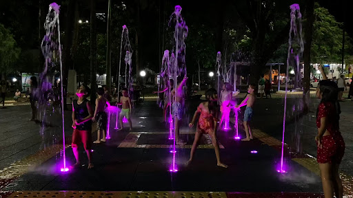 A praça é espaçosa, ideal para passear em família, e conta com um parquinho moderno, equipado com piso emborrachado seguro para as crianças brincarem à vontade. Outro ponto positivo foi encontrar um bebedouro público funcionando perfeitamente e banheiros disponíveis para os visitantes