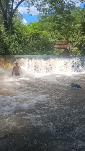 É um local muito bonito. Limpo e agradável, a água corrente também é muito limpa e fresquinha, bem rasa e translúcida, a árvores que fornecem sombra. De fato oque prejudica o local é a areia, muito areião, os caminhões e veículos que passam levantam uma nuvem de poeira, que além de tornar o entorno desagradável, vai lhe sujar todo caso você esteja molhado, as árvores e folhas das plantas também ficam cobertas por todo esse local, por isso essa essa tonalidade da folhagem do local, as folhas são verdes, mas gruda tanta areia que ficam amarelas ou vermelhas. Oque é uma pena, já que a cerca de 500 metros há asfalto, acredita que mais 1 ou 2 km de asfalto teria mantido esse lugar mais intacto a esse tipo de ação, o tornaria também mais acessível e agradável. De fato é um ótimo local para se ir e relaxar, só não sei se me arriscaria a comer algo no local (como um churrasco )já que minha comida se encheria de terra. As prefeituras deveriam explorar melhor esse lugar, bem como já tomar ações para que permaneça magnífico como é pelos próximos anos. Do outro lado da estrada existe uma pedreira a qual não...