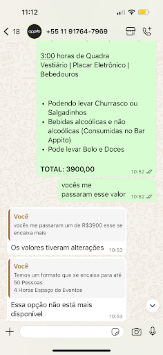 Esse tipo de prática fere diretamente o Código de Defesa do Consumidor (art. 6º, III e art. 39, V e X do CDC), pois houve: • Falta de informação clara e adequada; • Elevação de preço sem justa causa; • Quebra de expectativa legítima do consumidor, que já havia organizado churrasco e decoração contando com a contratação do espaço.