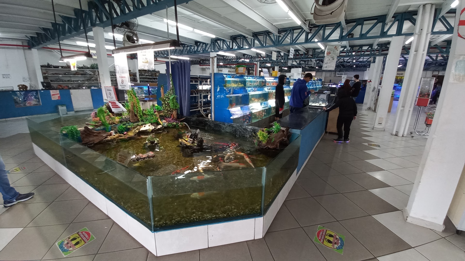Bem a frente tem a loja de peixes, muito completo com aquários, rações, remédios, plantas aquáticas e muitos peixes, muito mesmo nunca vi tanta espécie de peixes. Peixes grandes, pequenos, feios, bonitos, barato, caros. Muito legal para levar crianças pois bem na entrada tem um tipo de lago com muitas carpas.