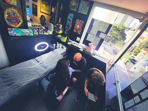 My friends and I were surprised to find Raff up next to the gallery gift shop with his tidy setup! As tourists, we didn't speak a lick of Portuguese but Raff communicated clearly with us through the language barrier. He made a point to show us how he opened each brand new needle and shaving razor, keeping his workstation clean and organized during the process. He kept checking on us making sure we were comfortable and didn't rush us at all.
