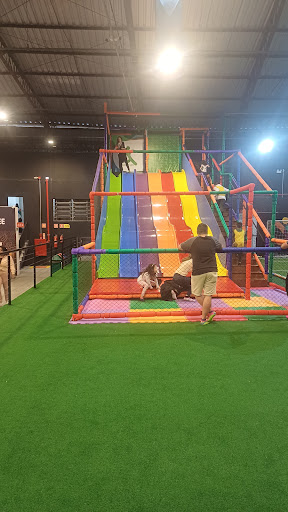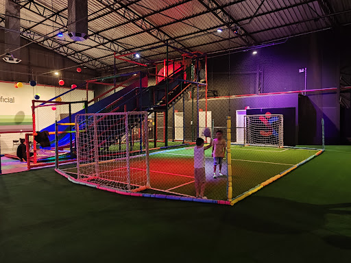 Read moreDiversão garantida nas férias de Julho. De quarta e quinta o ingresso é mais barato, e comprando antecipadamente sai mais barato ainda. Parque de trampolim e diversões indoor. É muito grande: são 2.400mt2. Isso quer dizer que comporta uma galerinha, sem ficar com aquela impressão de muito cheio. Pros pequenos tem o trampolim com cestas de basquete ,obstáculos, batalha de cotonete, alguns balanços na parte inflavel,um tobogã gigante de 6 lugares, um brinquedão sinuoso e uma piscina de bolinha bem grande, com outro tobogã em espiral, campinho de futebol, e tem o circuito de arvorismo e paredes de escalada. Esse o meu menino mais velho adorou! O mais novo gostou do tobogã, foi várias vezes. Dentro tem lugar para estacionar, e lanchonete com opções de doces, salgados, salgadinhos, café, pipoca, refrigerante e suco e balas de gelatina a granel. Lanchamos por lá e optamos pelo combo de x-burger e estava gostoso e bem servido pras crianças. Adorei tudo e vamos...