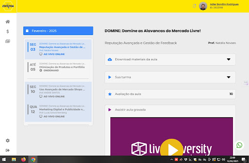 Aula 1 Data 03/02/2025 3:34:02 ( Reputação Avançada e Gestão de Feedback ) Aula 2 Data 05/02/2025 49:22 ( Otimização de Produtos e Portfólio ) Aula 3 Data 10/02/2025 3:26:34 ( Uso Avançado de Mercado Shops e Loja Oficial ) Aula 4 Data 12/02/2025 3:13:05 ( Marketing Digital e Publicidade no Mercado Livre ) Aula 5 Data 17/02/2025 56:42 ( Integração Logística e Escalabilidade Operacional ) Aula 6 Data 19/02/2025 43:37 ( Estratégias Avançadas de Anúncios ) Aula 7 Data 24/02/2025 42:33 ( Precificação Avançada para Competitividade ) Aula 8 Data 26/02/2025 4:03:26 ( Mercado Ads - Estratégias para Crescimento Sustentável ) Aula 9 Data 10/03/2025 37:59 ( Automatização de Processos e Gestão Eficiente ) Aula 10 Data 12/03/2025 36:48 ( Central de Promoções e Ofertas Especiais ) Aula 11 Data 17/03/2025 50:40 ( Envios Full - Como Maximizar a Logística e o Atendimento ao Cliente ) Aula 12 Data 19/03/2025 50:14 ( Gestão Financeira e Controle de...