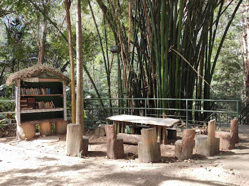 Read moreLogo na entrada tem um local com livros para troca e doação, Não aconselho ir com criança, local e bem arborizado, as trilhas é um pouco fechada, a parte do playground está sendo consumida pelo tempo e natureza, tem bastante musgo e pelo visto não tem manutenção a um bom tempo, a trilha que tem a ponte está inacessível "ponte quebrou " e nem se quer foi interditada ou colocado um aviso, se não tiver atenção pode ocorrer um acidente, banheiro não tem luz o piso ao redor tem buracos enorme, infelizmente. é um local que parece está esquecido pelos nosso governantes, fora isso para quem gosta de natureza e caminhar pela mata, vá com roupas apropriadas e leve repelente e uma...