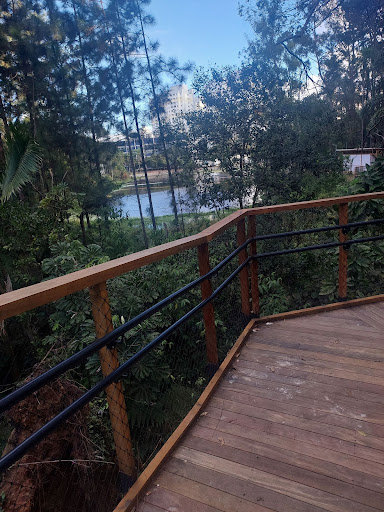 Read moreÉ um ótimo espaço para caminhadas. A grama ê bem cuidada, no geral é bem limpo, bastante verde. Tem 2 áreas que possuem alguns brinquedos para crianças, uma delas com vários quebrados, tem 2 quadras, uma delas com a grade bem danificada, tem seguranças em 3 locais, no dia que fui não vi fazendo ronda. Tem 2 locais de equipamentos de academia a céu aberto, com vários equipamentos quebrados, sem manutenção. Restos de obra ao lado da quadra com ferragem exposta, podendo ferir alguma criança ou animal. Não localizei bebedouros ou banheiros químicos, o lago está sujo, quase parecendo um pântano, com assoreamento, o parque quase não tem bancos para sentar. Esse espaço poderia ser bem...