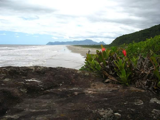 Read moreDepois de quase 3h de estrada eu esperava um lugar lindo com praias de tombo, areia grossa e coisas que uma estrada de 3h poderia oferecer. A praia me pareceu as mesmas daqui de Itanhaém ou Peruíbe... Aquela areia fina, água marrom... Melhor, pois não tem buracos. Talvez o que encanta seja o horizonte sem prédios e aquele contato com a natureza, porém a praia Estância de Santa Cruz de Itanhaém dá a mesma sensação... O que deve compensar são as trilhas porém não fui e não tenho opinião sobre elas. Na minha opinião a praia do Guaraú é melhor caso você esteja procurando um local pra nadar e passar um dia com a família. Se você for aventureiro, não aconselho ir com carro de passeio, porque se chover há uma possibilidade enorme de você não voltar. Aconselho ir com o ônibus circular que vai pra lá, ou ir em dias que não choveu e nem corre o risco de chover. Tem áreas de camping e parece ser seguro. Lá não tem quiosques, mas tem umas barracas que vendem bebidas. Fui, mas não sei se voltaria. Pra mim que queria apenas nadar no mar não...