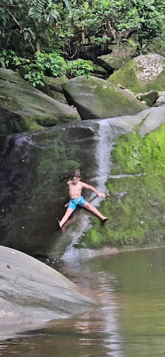 Read moreGente eu me diverti demais, e me surpreendi muito, nao imaginava, sempre ouvi falar mal, que era um lugar abandonado e por isso nao tinha curiosidade de revisar, tinha vindo quando criança quando a estrada ainda era de terra e nem tinha portaria. Hoje nossa é um dos meus lugares favoritos aqui na baixada. Agua de cachoeira revigorando, quem nao quer fazer a trilha pode ficar logo na entrada com onde tem parte funda e parte rasa para crianças. Para quem quer fazer a trilha tem escadaria, pontes, onde vc vai apreciando a paisagem e termina na gruta azul, facil acesso, da para ir criança, idoso. Sem qualquer tipo de risco ou dificuldade. Agora tem uns pontos em que vc pode descer para a gruta e para as quedas da água e optar descer pelas pedras, eu doravante aventureiro fiz isso, mas é escorregadio e perigoso. Mas nesses acessos tem pontos de queda de água que forma uma piscina com a massagem da natureza. Para que sabe nadar a parte funda é bem legal pois da para escorregar da pedra. A gente amei! Tem quiosques, eles são muito receptivos, sempre dão pra gente borrifador de repelente para ficar até o final do passeio. Tem quiosque para piquenique, tem salva vida. Os quiosques tem preços ótimos. 3 cerveja por R$10,00eles levam pra vc na beira da água no balde com gelo. Tem refeições completas, tem porções maravilhosas a partir de R$80,00. Vão que vale a pena. Segue as...